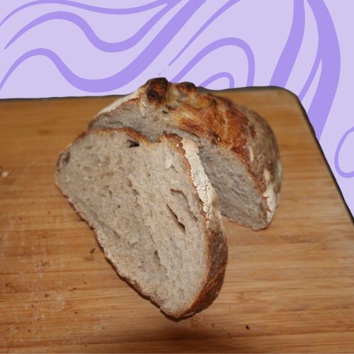 PREORDER 2 DAYS IN ADVANCE - Sourdough Loaf made with naturally fermented sourdough over a 1-month process, using a mix of whole wheat and all-purpose flour. It's crusty, fluffy, and gut friendly.